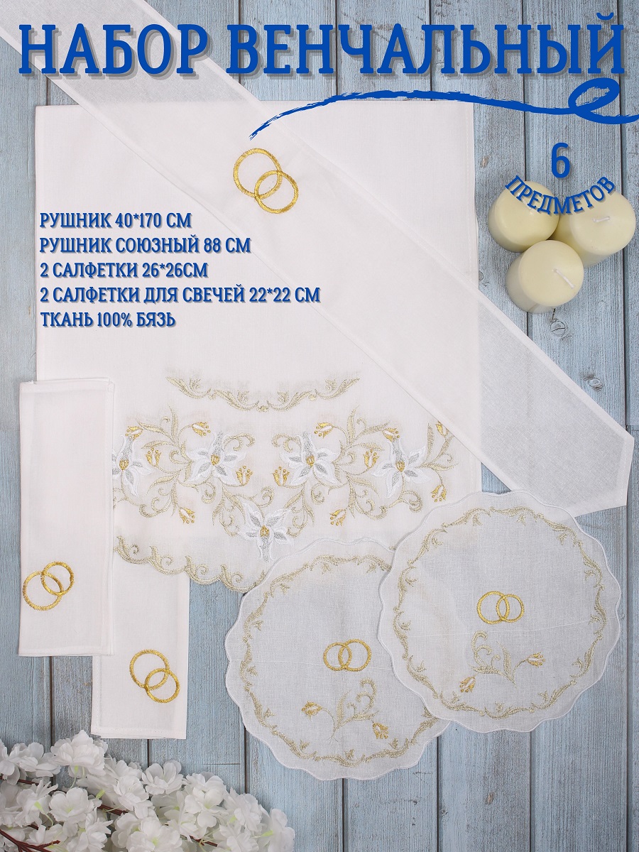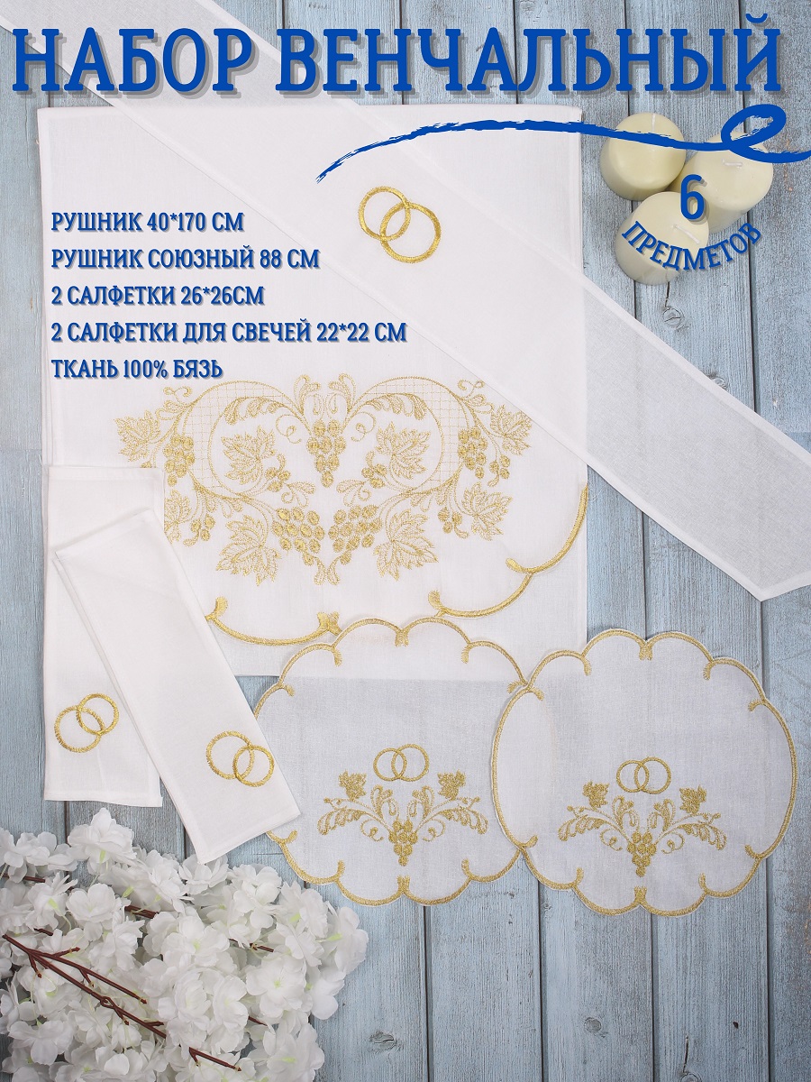 Венчальный набор P&M 6 предметов рушник 40х170 рушник союзный салфетки 4 шт ВНК