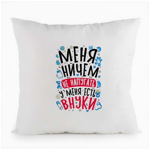 Подушка белая CoolPodarok Прикол. Семья. Меня ничем не напугать, у меня есть внуки2
