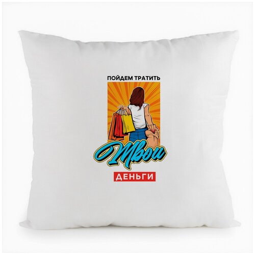 Подушка белая CoolPodarok Прикол. Пойдем тратить твои деньги