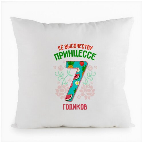 Подушка белая CoolPodarok Ее высочеству принцессе 7 годиков