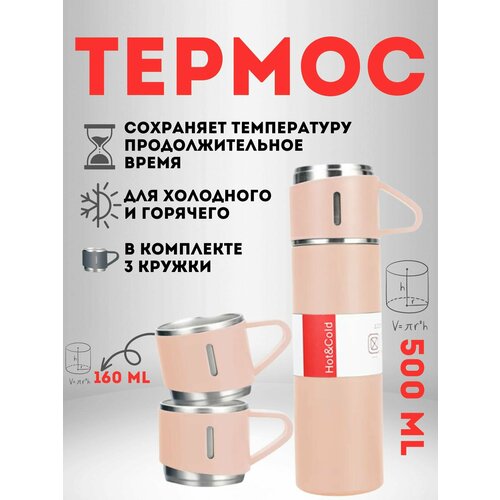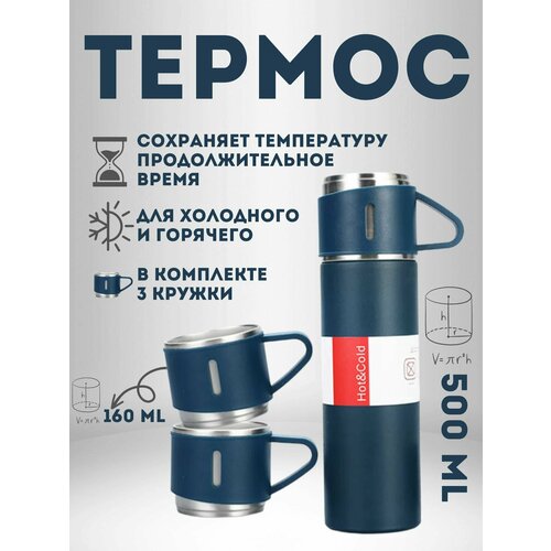 Термос в подарочной упаковке, стальной с 3 кружками