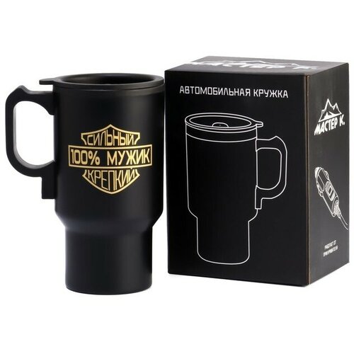 Термокружка, серия: Автомобильная, "100 % мужик", 450 мл, сохраняет тепло 4 ч, 12 х 17 см