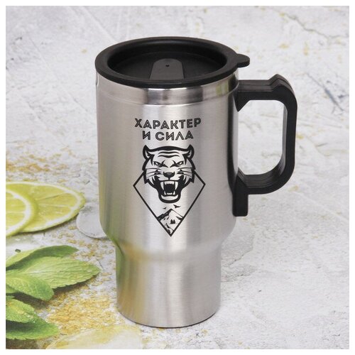 Термокружка 450мл, с подогревом от прикуривателя "Характер и Сила" Тигр Серп и молот