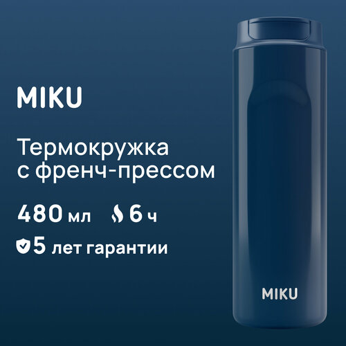 Термокружка с френч-прессом MIKU 480 мл (Синий)