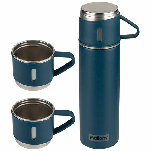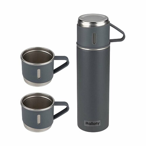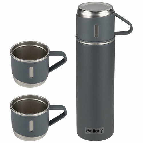 Термос Mallony Festa, 0,5 л, 3 термокружки, серый