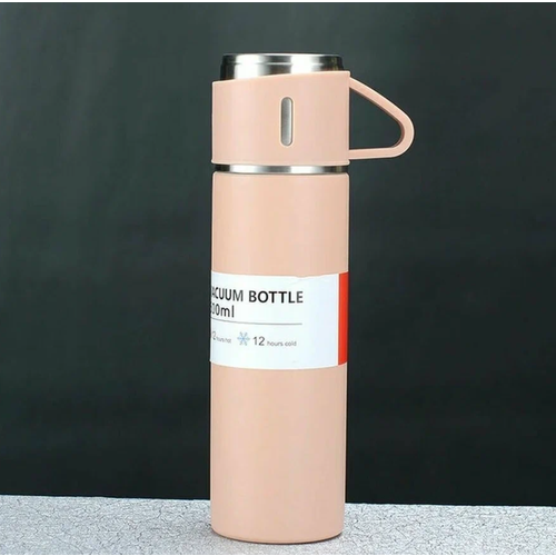 Термос вакуумный с двумя кружками / Подарочный набор / Объем 500 мл / Термокружка Розовый