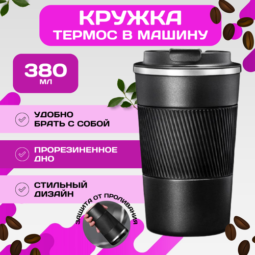 Термокружка автомобильная из нержавеющей стали, черная