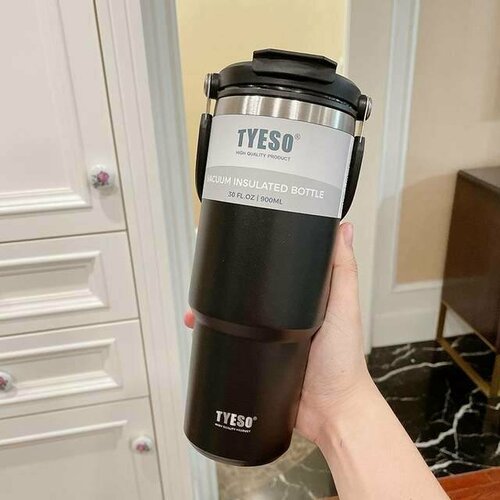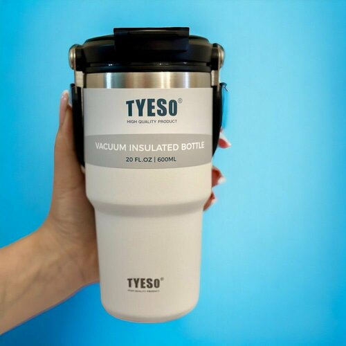 Термокружка для кофе и чая с собой 600 мл. Кружка термос с двойной стенкой из нержавеющей стали с трубочкой