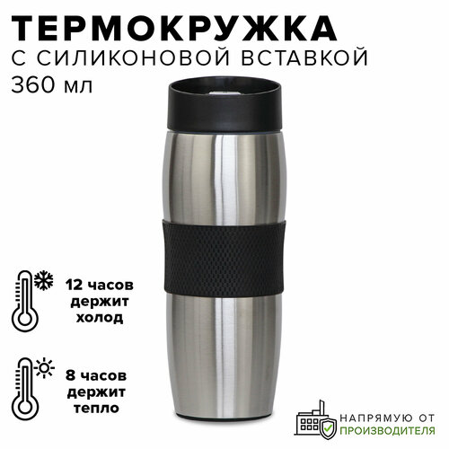 Термокружка стальная 360 мл с силиконовой вставкой, Good Sale