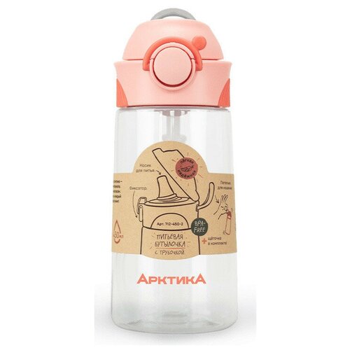 Бутылка Арктика 712-450-2 0.45л прозрачный/коралловый тритан (компл: трубочка) карт. кор. (712-450-2/COR)