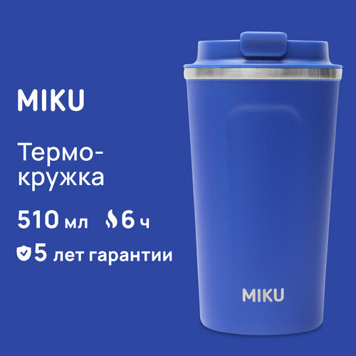 Термокружка MIKU для кофе, чая с собой и в автомобиль 500 мл (Синяя)