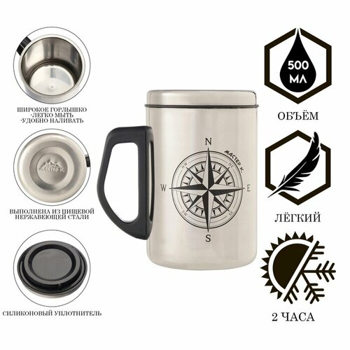 Термокружка, 500 мл, Сталь "Компас", сохраняет тепло 2 ч, 13.5 х 8.3 см 9919068