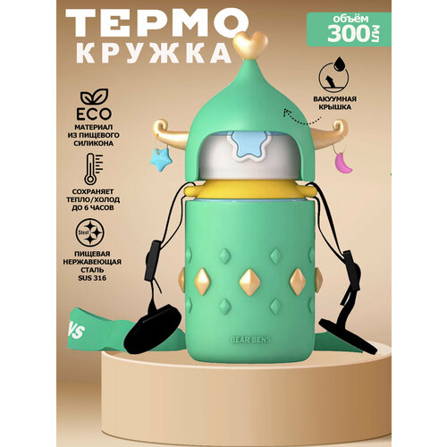 Термокружка с трубочкой, детская, из нержавеющей стали, объемом 300 мл,.