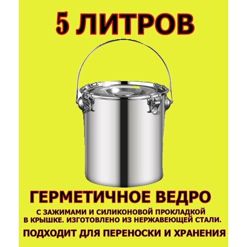 Ведро контейнер с зажимами (клипсами) нержавеющая сталь, с крышкой, герметичное ведро. 5 литров