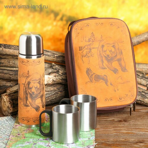 Набор «Медведь и собаки», термос 500 мл, кружка 2 шт