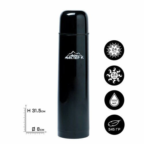 Термос, серия: Гильза, 1 л (Гарантия 5 лет), сохраняет тепло 24 ч, чёрный