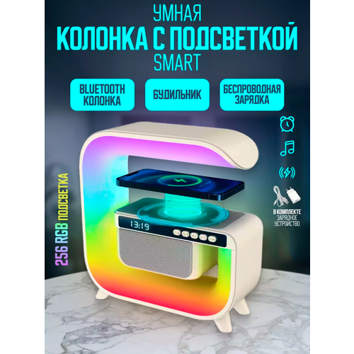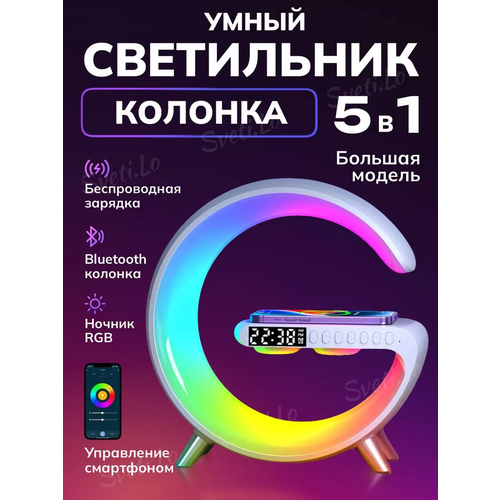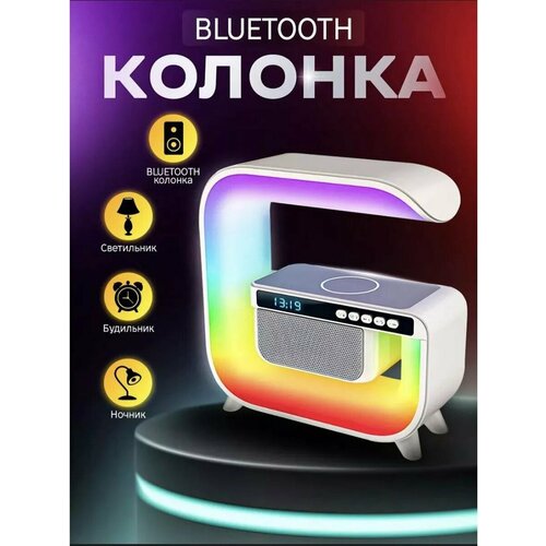 Многофункциональный умный декоративный портативный светильник, ночник BLUETOOTH/блютуз/ Беспроводная колонка / Беспроводная зарядка для iphone и android, white