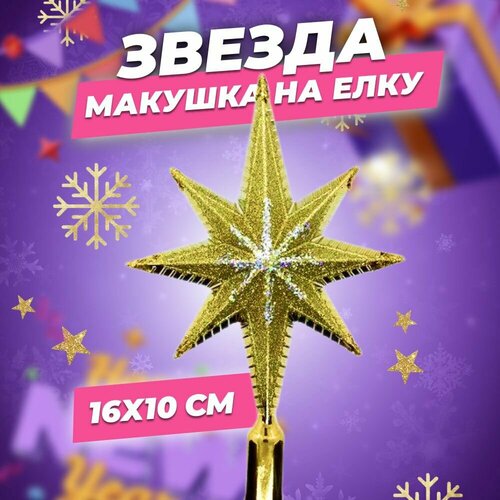 TipTop / Елочное украшение звезда на елку макушка на Новый год золотая с серебренными полосками