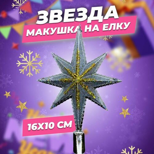 TipTop / Елочное украшение звезда на елку макушка на Новый год серебряная с золотыми полосками