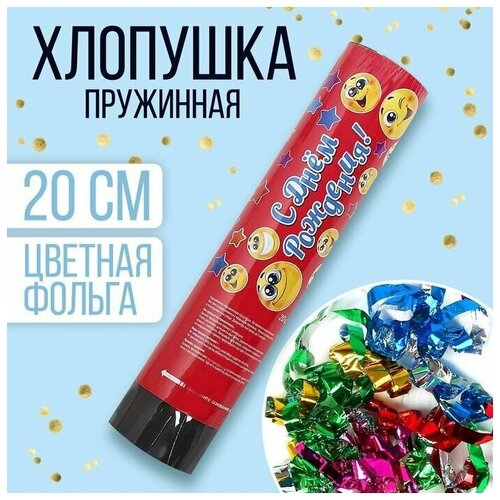 Хлопушка пружинная С днём рождения, смайлики, конфетти, фольга, серпантин, 20 см