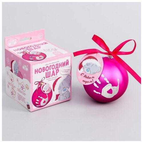 Елочный шар "Розовые цветы", d 8 cм, 5LED, от батареек, Т/белый