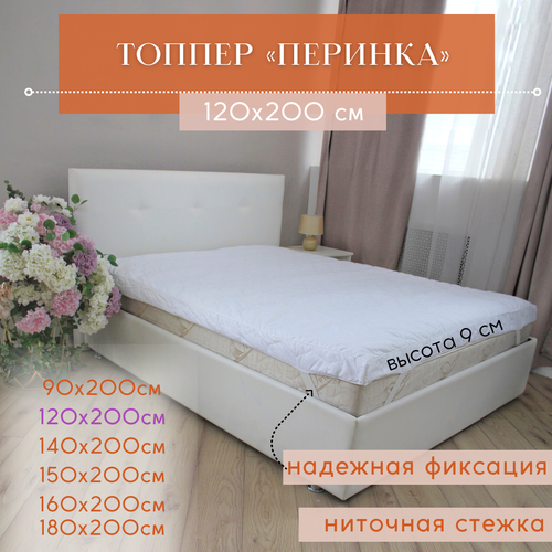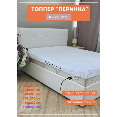 Перинка» размером 160х200 см произведен российским брендом Queen Butterfly. Он подходит для поддержания тела во время отдыха и помогает лучше расслабить мышцы. В качестве наполнителя использован современный гипоаллергенный материал холпласт, толщина которого составляет 9 см. Он состоит из прошитых между собой горизонтальных слоев и быстро восстанавливает форму после эксплуатации. Изделие продлит срок службы спального места, потому что защитит его от истирания и загрязнения. Сверху перинка обтянута простеганной микрофиброй, которая обладает высокой прочностью, износостойкостью. Она слабо сминается и не усаживается. Топпер пропускает воздух, удерживает тепло, хорошо впитывает влагу и быстро сохнет. Он сохранит комфортный микроклимат в постели.