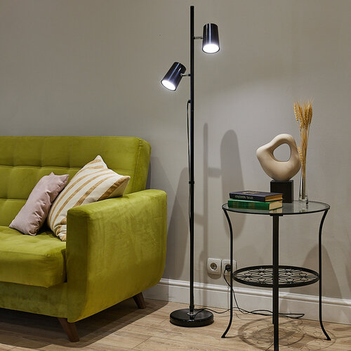 Напольный светильник с сенсорным управлением оснащен 3-мя уровнями яркости и поворотными плафонами.