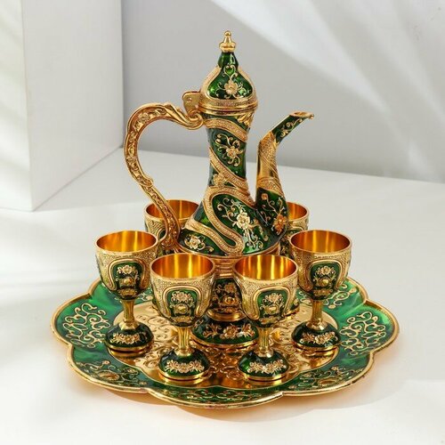 Набор винный кувшин, 6 бокалов и поднос "Турция. Цветы и узоры" зелёный с золотом 9717129
