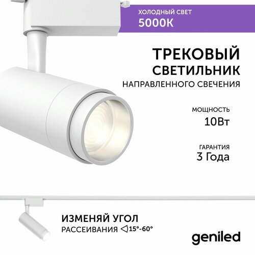 Трековый светильник Geniled Track Classic Zoom 10Вт 5000K 90Ra Белый с адаптером для 1-фазного шинопровода