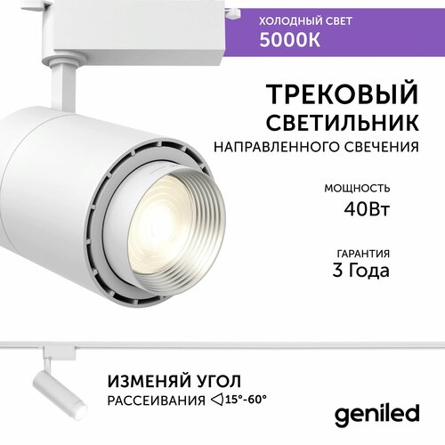 Трековый светильник Geniled Track Classic Zoom 40Вт 5000K 90Ra Белый с адаптером для 1-фазного шинопровода