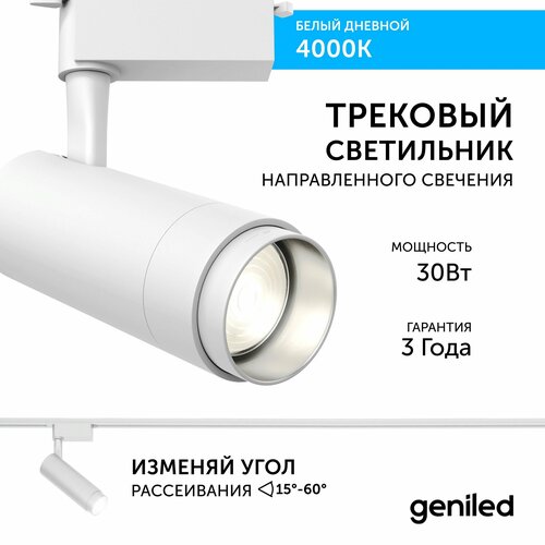 Трековый светильник Geniled Track Classic Zoom 30Вт 3000К с адаптером для однофазного шинопровода Белый
