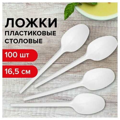Ложка столовая одноразовая пластиковая 165 мм белая комплект 100 стандарт LAIMA, 5 шт