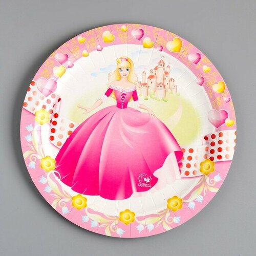 Тарелка одноразовая "Принцесса" ламинированная, картон, 23 см (100 шт)