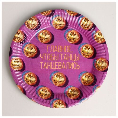Тарелка бумажная «Главное - танцы», набор 6 шт, 18 см