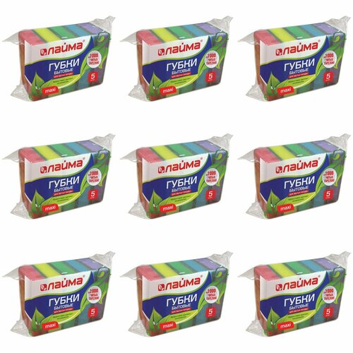 Лайма Губки для мытья посуды MAXI, 5 шт, 9 уп