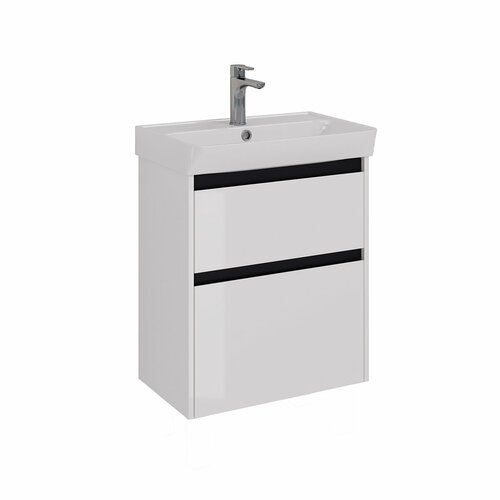 Тумба Lemark COMBI 60 см под 1 раковину, подвесная/напольная, 2 ящика, цвет планки: Чёрный, цвет корпуса, фасада: Белый глянец