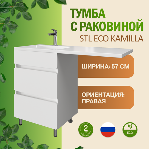 Тумба с раковиной STL Eco Kamilla 57 правая напольная белая