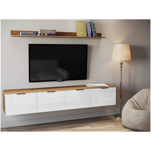 Тумба под тв "Милана" (2000*300*370) Белый/ Дуб вотан