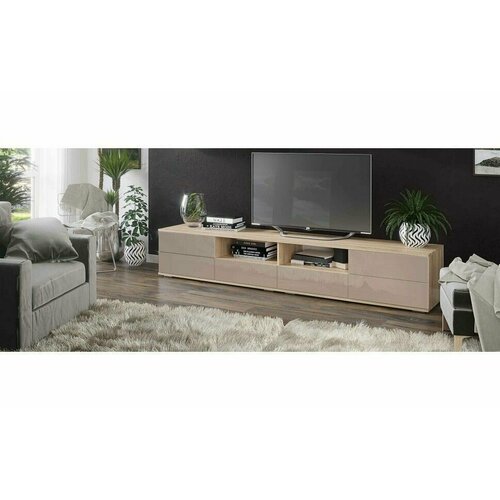 Тумба под ТВ Тренто 240.2х47.3х43.6 Дуб Сонома/Капучино