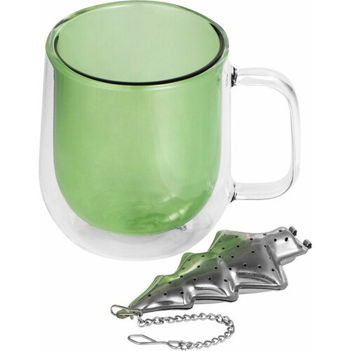 Набор Christmas tree: кружка и ситечко для чая, зеленый
