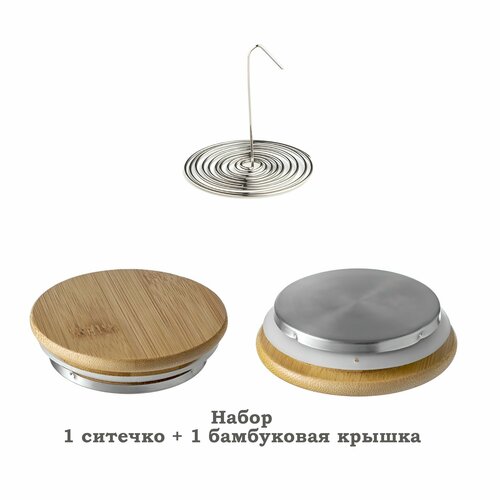 Набор: 1 крышка для чайника бамбук + 1 ситечко для носика