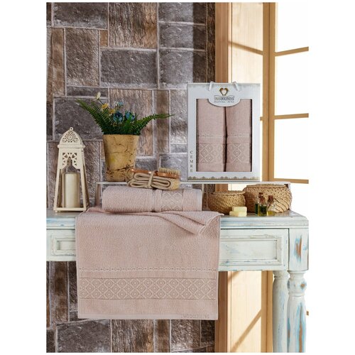 Набор полотенец "SEVAKIN" махра арт: 10239-кремовый размер Набор из 3 штук