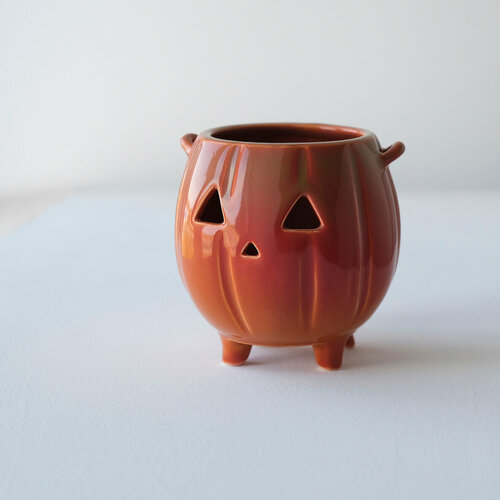 Тыква подсвечник "Pumpkin ANGRY", керамика, высота 12 см.