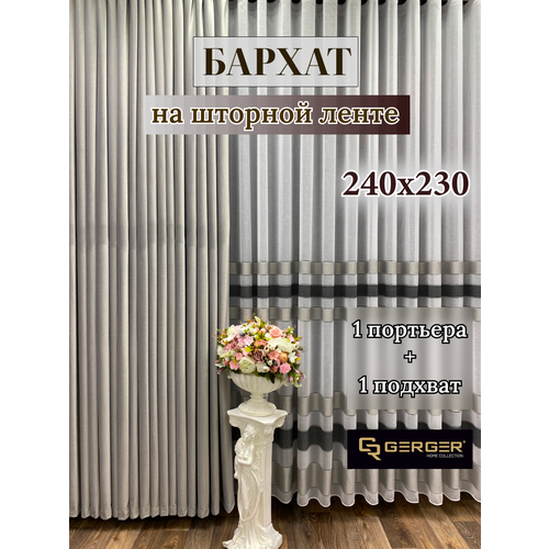 Портьера Gerger на шторной ленте 240х230, светло-серый