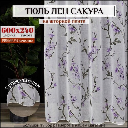 Цены на Тюль Сакура лен/ Высота 240см Ширина 200см (2.4 м на 2.0 м ) Тюль для кухни / Тюль в гостиную / Тюль в детскую / шторы фиолетовый в г. Москва