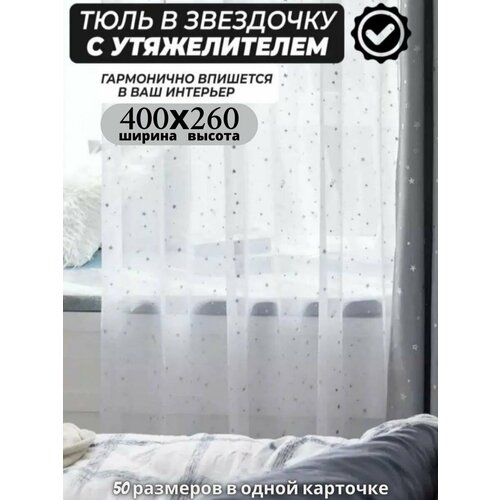 Тюль лен с звездой/ Высота 260см Ширина 400см (2.6 м на 4.0 м ) Тюль для кухни / Тюль в гостиную / Тюль в детскую / шторы