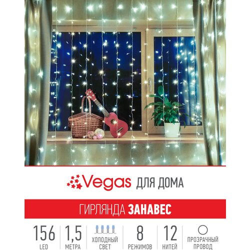 Гирлянда Vegas Занавес 55076/77/78/80, 1.5 х 1.5 м, 156 ламп, холодный/прозрачный провод