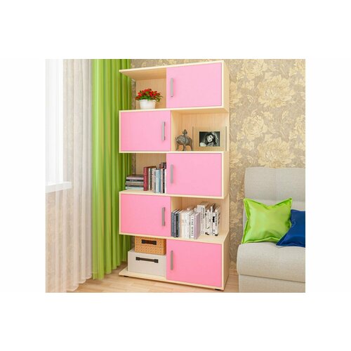 Стеллаж для книг и посуды Астра-9 дуб молочный/пинк