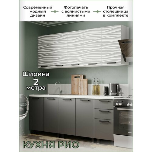 Кухня Рио 2.0 метра с фотопринтом и столешницами (1200 и 800)
