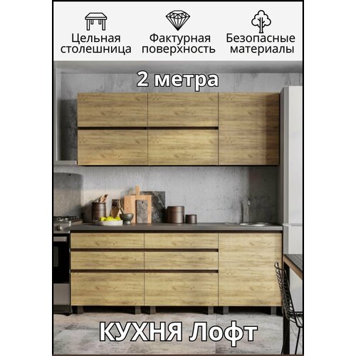 Кухня Лофт фактурная цвета крафт 2.0 метра со сплошной цельной столешницей в комплекте